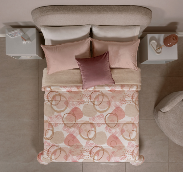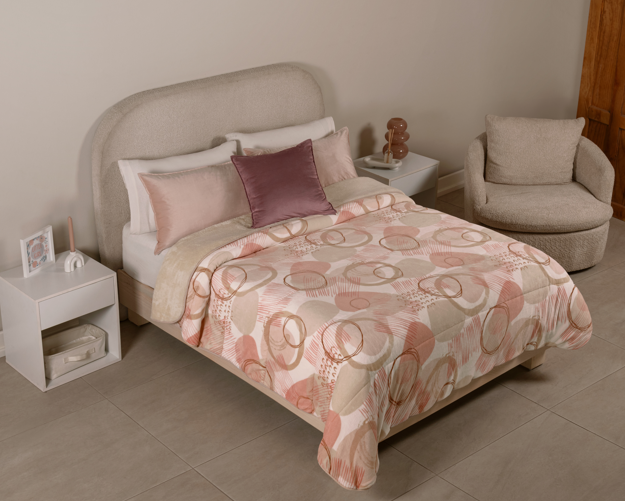Envuelve tus noches en suavidad y estilo con el cobertor con borrega, una pieza diseñada para brindar calidez y un toque artístico a tu hogar. Su tono claro aporta luminosidad y tranquilidad al ambiente, mientras que su original estampado de pinceladas crea un efecto visual moderno y sutil, ideal para quienes buscan una decoración con personalidad sin perder la armonía.