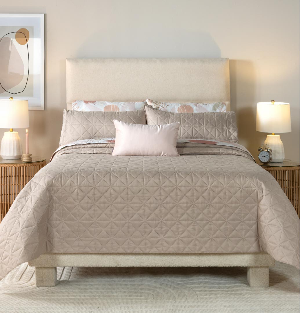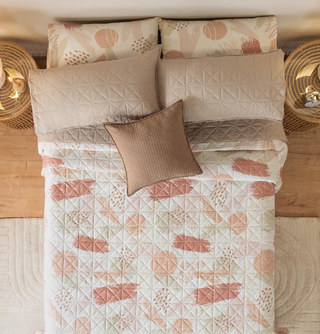 El edredón Caleta es una obra de arte que aporta una sensación única de dinamismo y modernidad a tu dormitorio. Su diseño presenta pinceladas abstractas que se combinan en tonos suaves y naturales.El contraste entre las pinceladas y el fondo neutro resalta la belleza del diseño, convirtiéndolo en el punto focal de la habitación. En su segunda vista, el edredón Caleta ofrece un acabado en tonos suaves, ideal para complementar la armonía de su primer vista. Con su textura suave y envolvente, este edredón no solo embellece el espacio, sino que también garantiza una noche de descanso placentero.