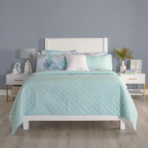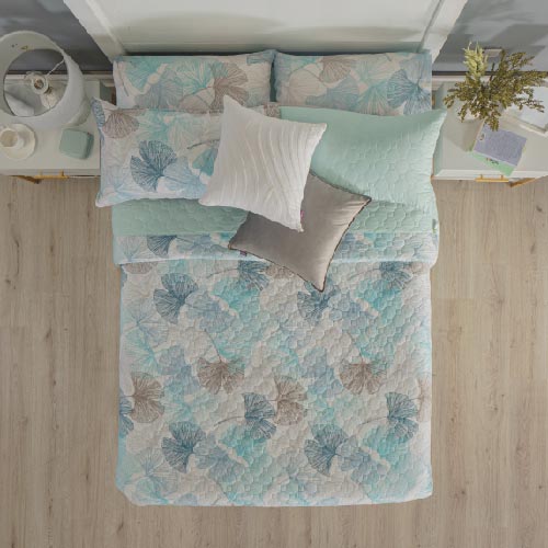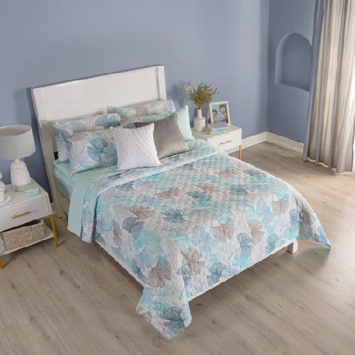 El edredón Cataluña Menta combina frescura y estilo en una pieza de ropa de cama que transforma cualquier habitación en un oasis de tranquilidad y elegancia.