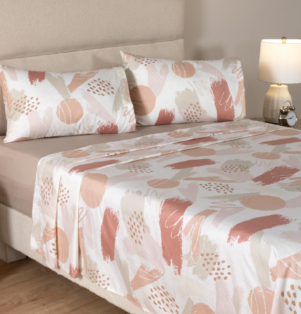 Las sábanas Caleta ofrecen un toque artístico y moderno para tu dormitorio. Con un diseño único de pinceladas que parecen fluir suavemente sobre el tejido, estas sábanas aportan una sensación de dinamismo y frescura. El patrón abstracto y fluido da vida al conjunto, mientras que el fondo neutro permite que el diseño destaque sin sobrecargar el espacio. Hechas de materiales de alta calidad, las sábanas Caleta son suaves al tacto y brindan una sensación envolvente y cómoda para un descanso placentero. Su versatilidad las hace fáciles de combinar con diversos edredones y decoraciones, convirtiéndolas en la elección perfecta para quienes buscan un estilo moderno y relajante en su hogar.